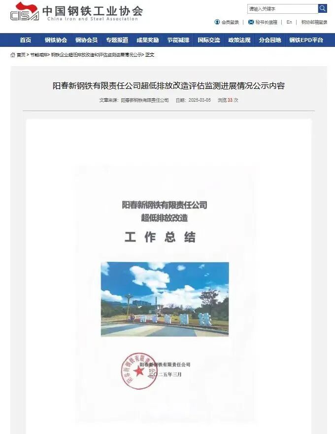 3月5日,阳春新钢铁有组织、无组织超低排放改造和评估监测顺利通过中钢协审核公示,标志着企业绿色化转型跃上新台阶,正式迈入全流程超低排放新阶段。