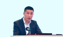 图为中煤科工所长徐亚军做《煤矿运支设备用高强度钢材应用现状与发展趋势》报告 |