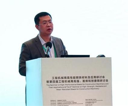 图为河钢集团材料院先进材料研发中心主任任帅做《绿色低碳高强工程机械用钢研发与应用实践》报告 | |