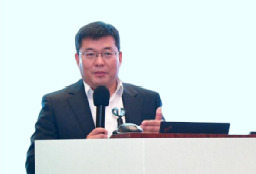 图为三一重工首席工程师王宝昆做《吉帕级热轧先进高强钢在新能源商用车轻量化的应用》报告